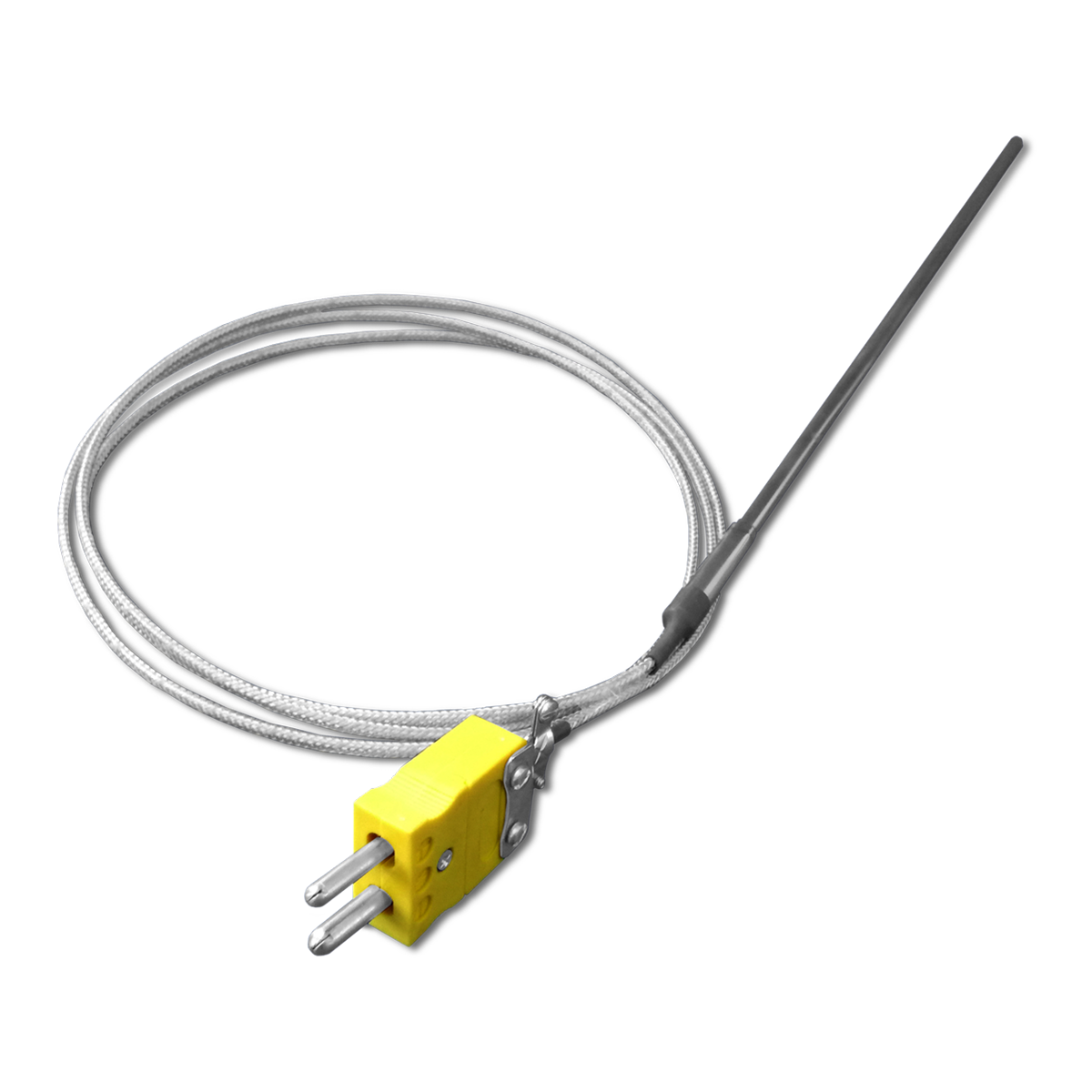 TERMOPAR COMPACTADO TIPO K DE 1/4” Ø X 14″ DE LARGO EXT. 1.5 MT FORRO FIBRA DE VIDRIO Y MALLA CON CONECTOR STD